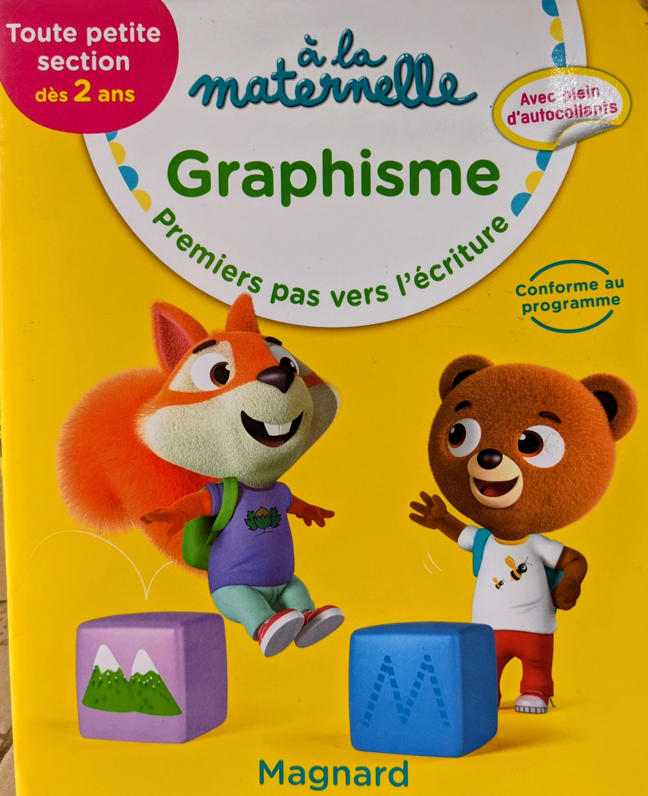 Des activités ludiques pour progresser dans l’apprentissage du graphisme. Avec des autocollants, des conseils destinés aux parents ainsi que des QR codes afin d’écouter des comptines.